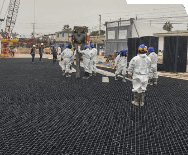 Estacionamiento de Maquinarias y Equipos Se construyo losas con el sistema estructural Geogrid Dg+ para el parqueo de maquinarias y equipos pesados. Información del proyecto Cliente SIGDO KOPPERS País Perú Año 2022 Área 1,500...